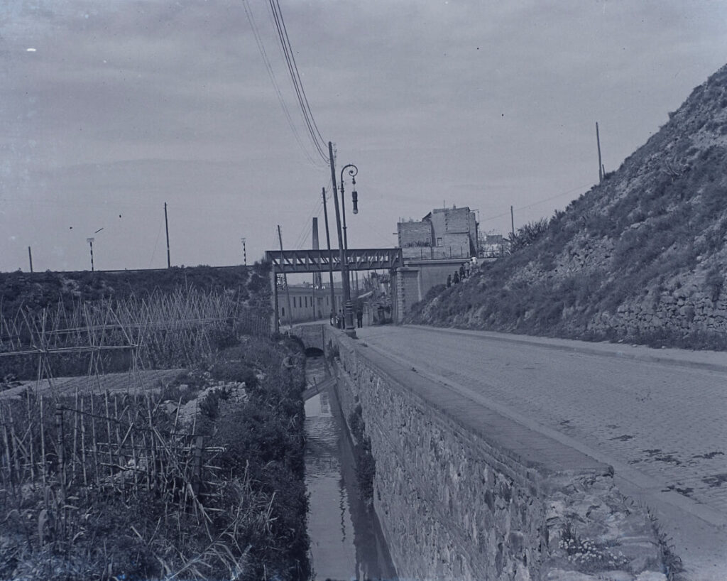 6. El Canal de la Infanta corria paral·lel a l’actual Carrer de la Mare de Déu de Port, a la mateixa alçada i per la seva banda esquerra (la que dóna a la muntanya). El acabar el barri de Port, la llavors Carretera de Port passava per sobre i el Canal continuava ara per la seva banda dreta. El primer tram que es va tapar va ser el del barri de Port. Després es va continuar cobrint en direcció cap a Sants, a l’alçada de l’actual Plaça de la Marina. Uns petits ponts permetien passar-lo d’una banda a l’altra (com podem veure en força mapes i fotografies). El desenvolupament de la indústria, ara basada en l’electricitat, la decadència de l’agricultura, i la instal·lació d’un sistema de subministrament d’aigua més modern, va fer que la importància del Canal es perdés i que fossin més importants els problemes que generava. Aquestes històries encara es poden sentir de part de les nostres veïnes i veïns que van viure aquells anys, com María Ortega de l’Associació Àncora. ↩︎